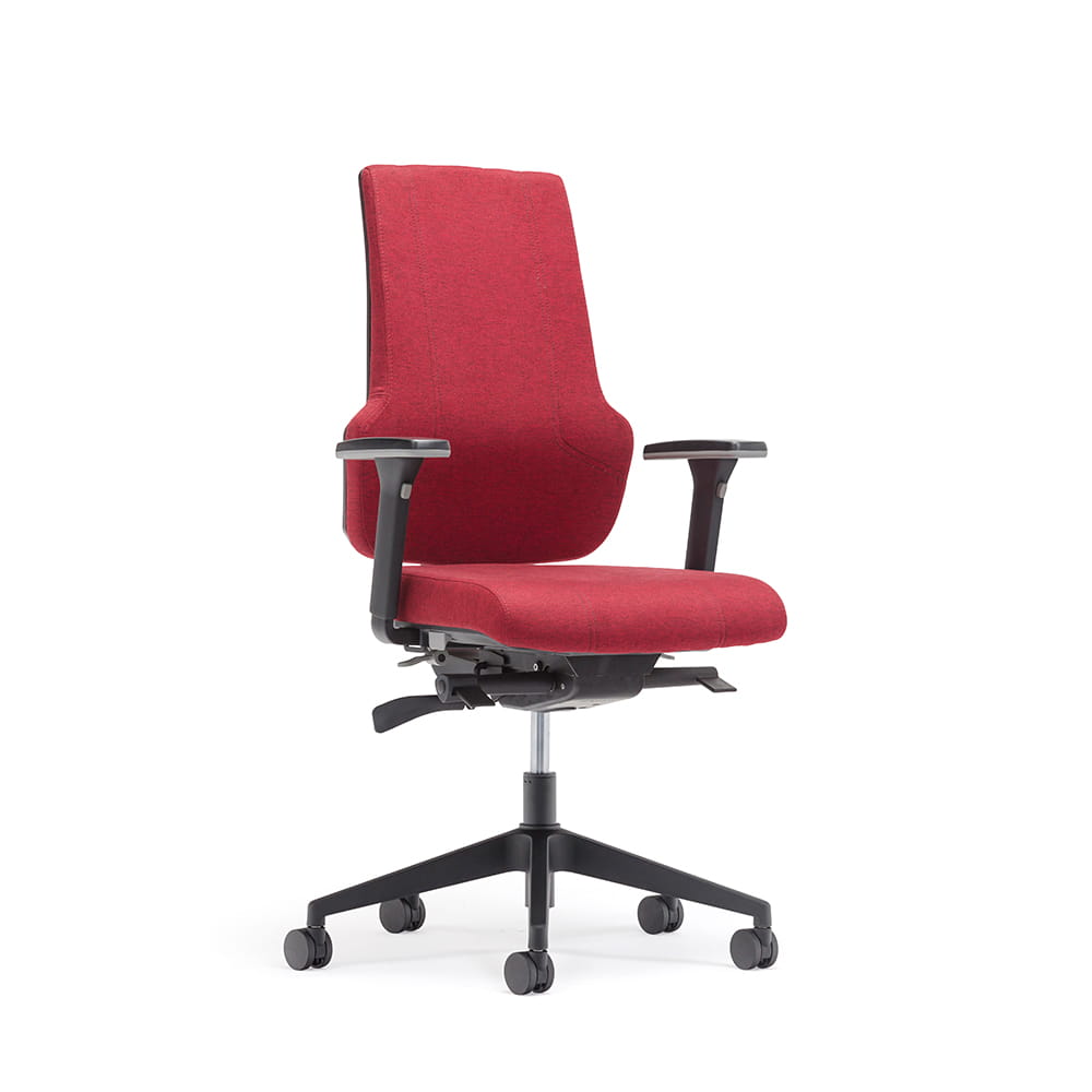 Der Comfy ist ein bequemer Bürostuhl mit einem ergonomischen Design und Sitz. Das schlanke Design verleiht dem Stuhl ein professionelles Aussehen. Die Rückenlehne ist mit einer höhenverstellbaren Lendenwirbelstütze ausgestattet, die den unteren Rücken optimal stützt. Zusammen mit der weichen Sitzfläche sorgt dies dafür, dass Sie stundenlang auf diesem Bürostuhl sitzen können.