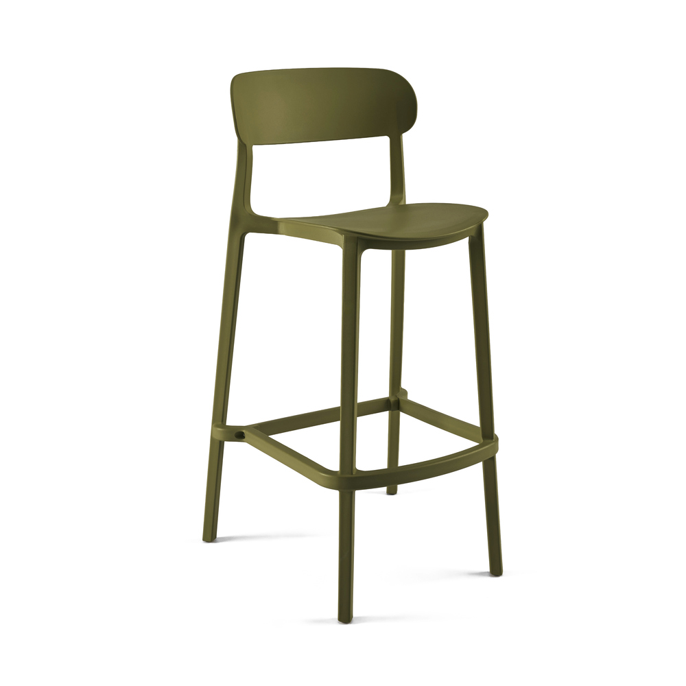 Dit is de barstoelvariant van de kantinestoel Pura. Hetzelfde uiterlijk, maar met hogere poten. Ideaal wanneer een bartafel en een kantinetafel zich in dezelfde ruimte bevinden. Zo vormt alles één harmonieus geheel. Net als de kantinestoel is deze ook geschikt voor binnen en buitengebruik. De Pura barstoel is verkrijgbaar in 4 verschillende kleuren.