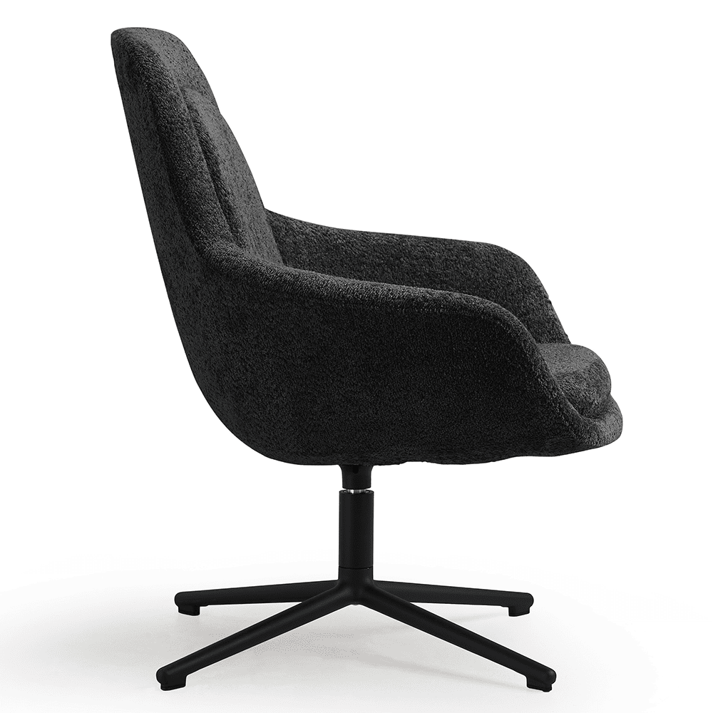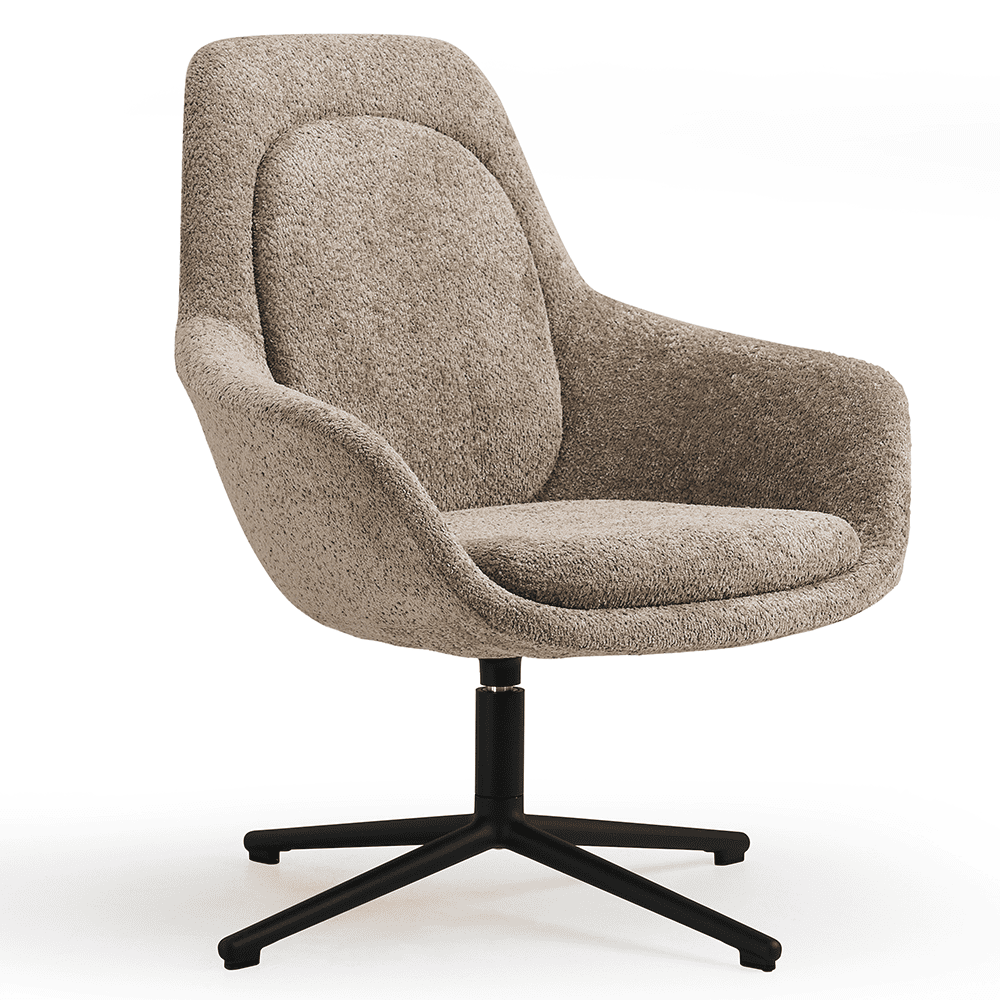 Calyon – waar design, comfort en functionaliteit samenkomen. Deze veelzijdige stoel is ideaal als bijzetstoel/loungestoel en voegt zicht moeiteloos naar elke interieurstijl. Dankzij de 360o draaifunctie geniet men van optimaal gebruiksgemak, terwijl het gevormde schuim langdurig zitcomfort garandeert. De zachte teddy bekleding voelt aangenaam aan en brengt een warme, sfeervolle uitstraling in de ruimte. De zwartgelakte vierpoots stervoet zorgt voor een eigentijdse look en stabiele basis. Beschikbaar in drie stijlvolle kleuren. Voor extra comfort is de Calyon ook beschikbaar met hoofdsteun. Bekijk hiervoor de Calyon – High.